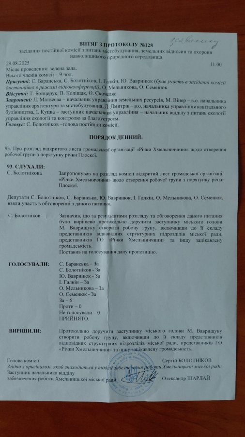 «Міський голова створив свою робочу групу без участі представників громадськості, хоча депутати ще 29 серпня доручили включити ГО «Річки Хмельниччини» до її складу», — зазначив активіст Павло Везденецький.