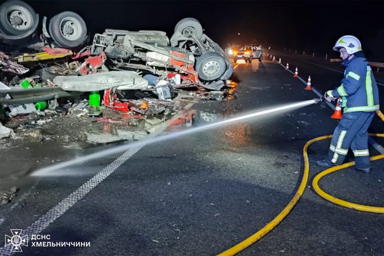 Повідомлення про аварію надійшло до Служби порятунку о 23:36. На місці події рятувальники деблокували тіло 60-річного водія вантажівки з понівеченої кабіни, від’єднали акумуляторні батареї та провели змивання паливно-мастильних матеріалів із проїжджої частини.