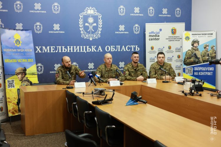 Підрозділ операторів дронів під назвою «BLACKOUT» презентували у Хмельницькій обласній державній адміністрації. Військовослужбовці Національної гвардії України під час прес-конференції розповіли про діяльність підрозділу, підготовку, завдання і оголосили набір добровольців для навчання і проходження служби.