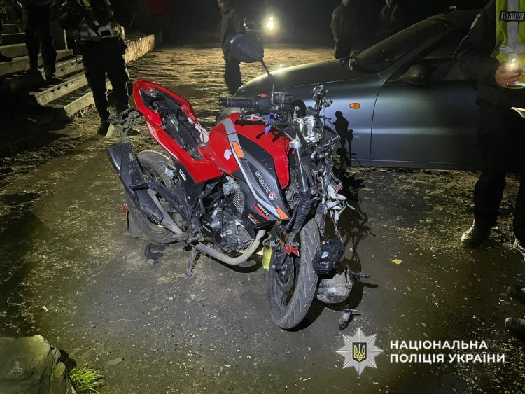 Аварія сталася 30 жовтня близько 19:00 у селі Старий Остропіль Хмельницького району. За попередніми даними, 16-річний водій незареєстрованого мотоцикла «Spark 200» допустив зіткнення з автомобілем «Daewoo Lanos», який рухався попереду в попутному напрямку та здійснював поворот праворуч, повідомили у поліції.