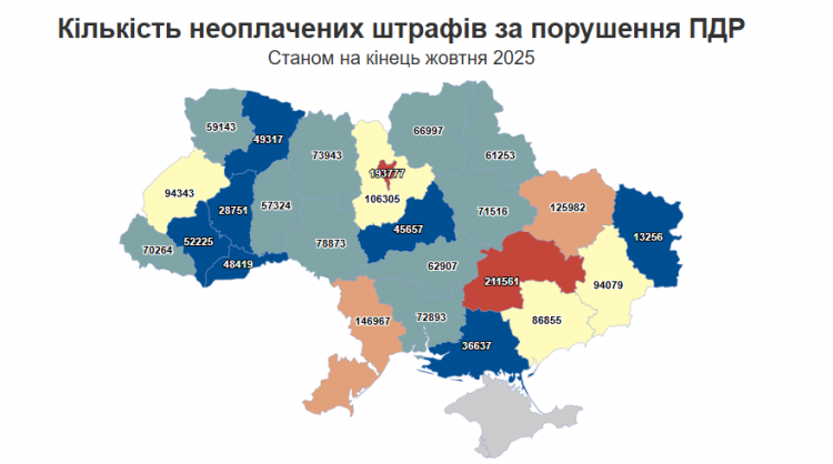 Понад 2 млн штрафів за порушення правил дорожнього руху нараховується у Єдиному реєстрі боржників станом на кінець жовтня 2025 року. Загалом на 43% побільшало неоплачених штрафів за порушення ПДР від початку повномасштабної. 1,5 млн штрафів за порушення ПДР або 75% від загальної кількості таких проваджень у Реєстрі завершені, хоча й борг «висить» на порушниках — просто у зв’язку з неможливістю стягнути борг з порушника, інформує Опендатабот.