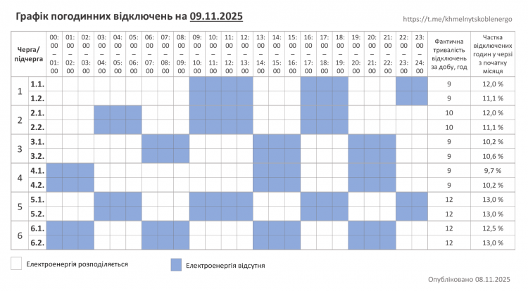 - На Хмельниччині 6 листопада 2025 року знову діятиме графік погодинних відключень