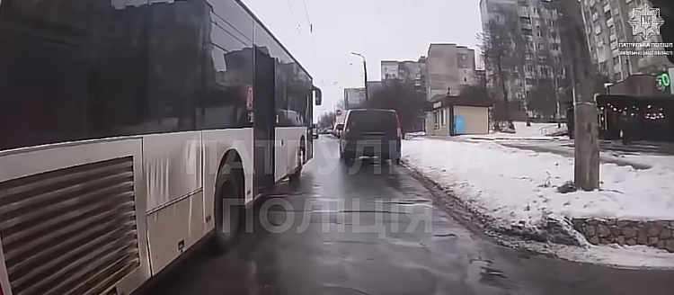 Днями до патрульної поліції надійшло звернення про те, що на вулиці Панаса Мирного водій маршрутного автобуса Mercedes, здійснюючи пасажирські перевезення, зупинився та висаджував пасажирів у невизначеному для цього місці — поза межами посадкового майданчика.
