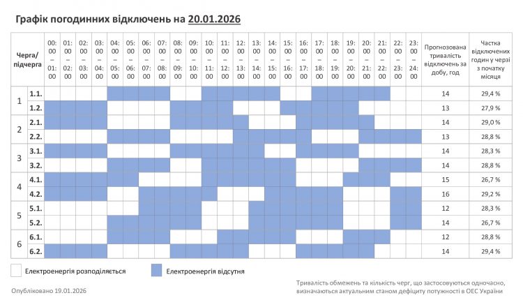 Завтра, 20 січня, на Хмельниччині діятиме графік погодинних відключень. В обленерго наголошують, що це прогноз відключень! У разі зміни ситуації та отримання нових розпоряджень від оператора системи передачі, обсяг обмежень може змінитися.