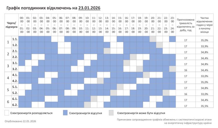 - Хмельниччина: графік відключень на 22 січня: світла не буде 18 годин на добу