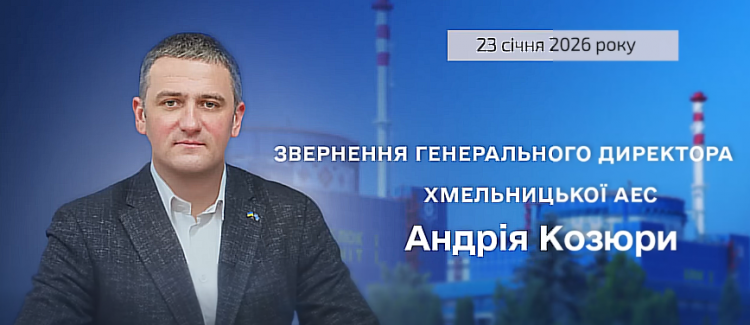 Звернення генерального директора Хмельницької АЕС Андрія Козюри від 23 січня 2026 року щодо роботи підприємства та радіаційного стану в зоні спостереження ХАЕС.