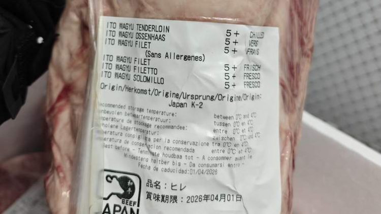 На оприлюднених митниками фото зазначено, що частина м’яса — це японська яловичина сорту Kobe (Wagyu) категорії 5+, яка свідчить про найвищий рівень мармуровості. Це найдорожча у світі мармурова яловичина, отримана від спеціальних порід корів. На українському ринку її вартість стартує від 12,5 тис. грн за кілограм, інформує ZAXID.NET.