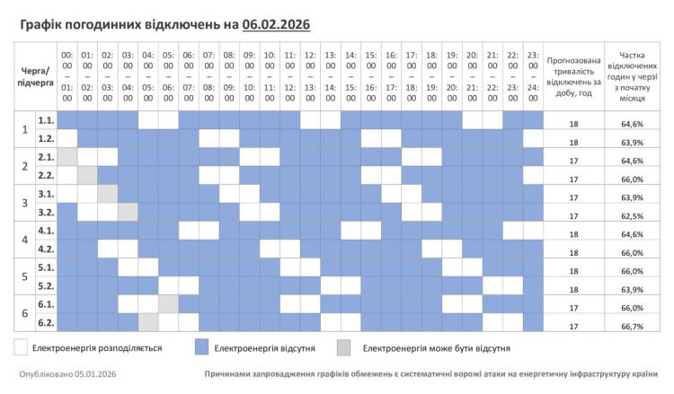 На Хмельниччині за розпорядженням НЕК «Укренерго» 6 лютого діятиме графік погодинних відключень.