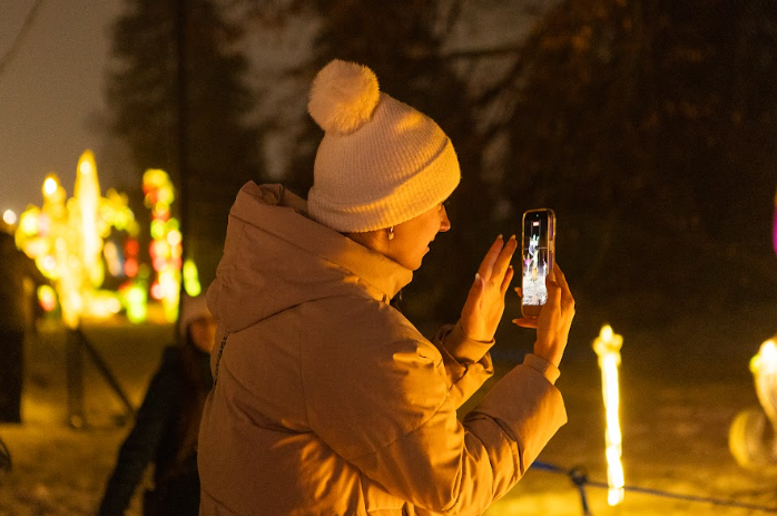 Висота світлових фігур сягає семи метрів, перетворюючи вечірній парк на справжній світ фантазії та світла.