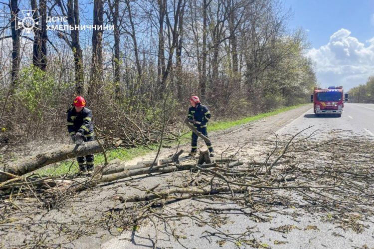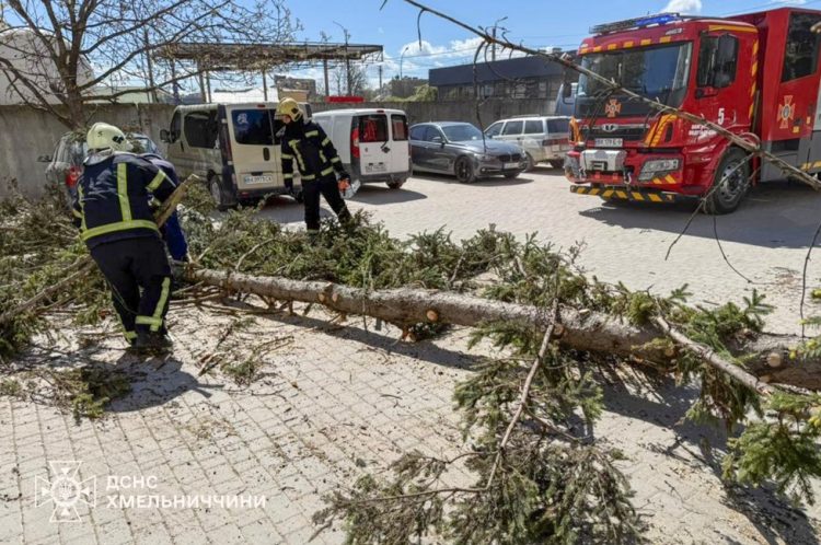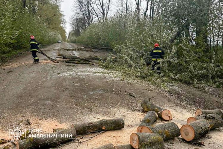 Станом на 17:00 рятувальники вже прибрали 29 повалених дерев. Крім того, у містах Хмельницький та Славута здійснено три виїзди для демонтажу аварійних елементів балконів, які становили потенційну небезпеку для мешканців.